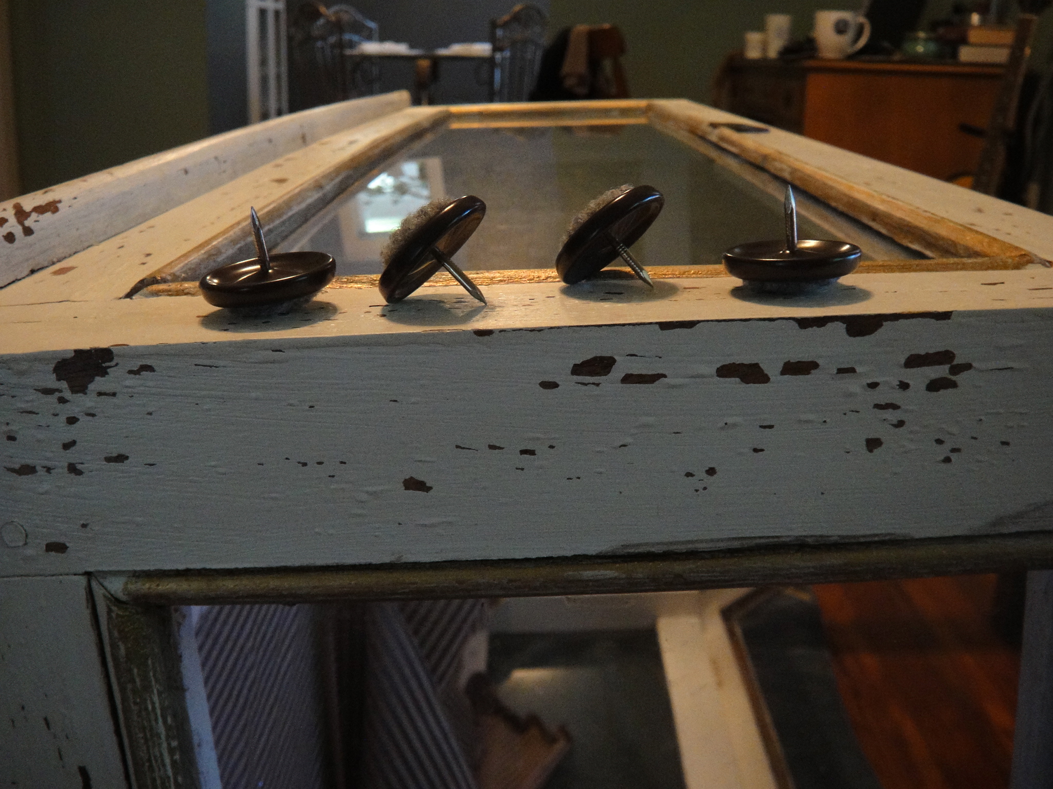 Also, because we have 100-year-old pine floors (a very soft wood), protective furniture feet must to attached to every piece of furniture that enters the house.