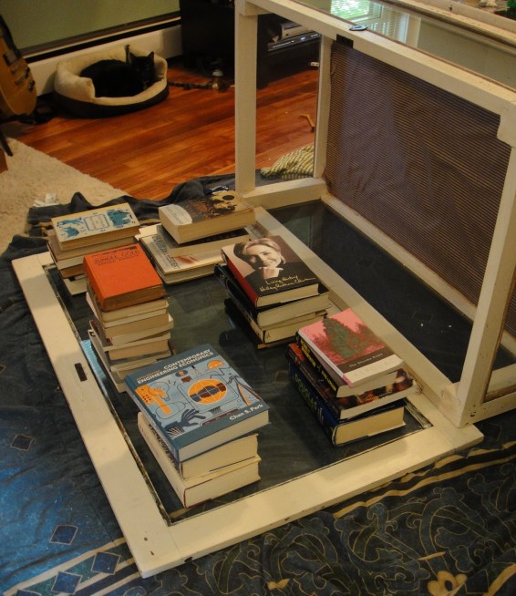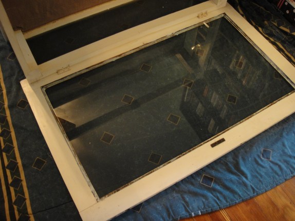 Okay, so it doesn’t look incredibly awesome in that picture. But, it will soon, after a little work. Two legs were loose and the glass insert on the top of the table was no longer inset, but just sitting on top of the wood frame, waiting to slide off the top of the table and shatter into a million pieces the next time someone opened it, or so I imagined.