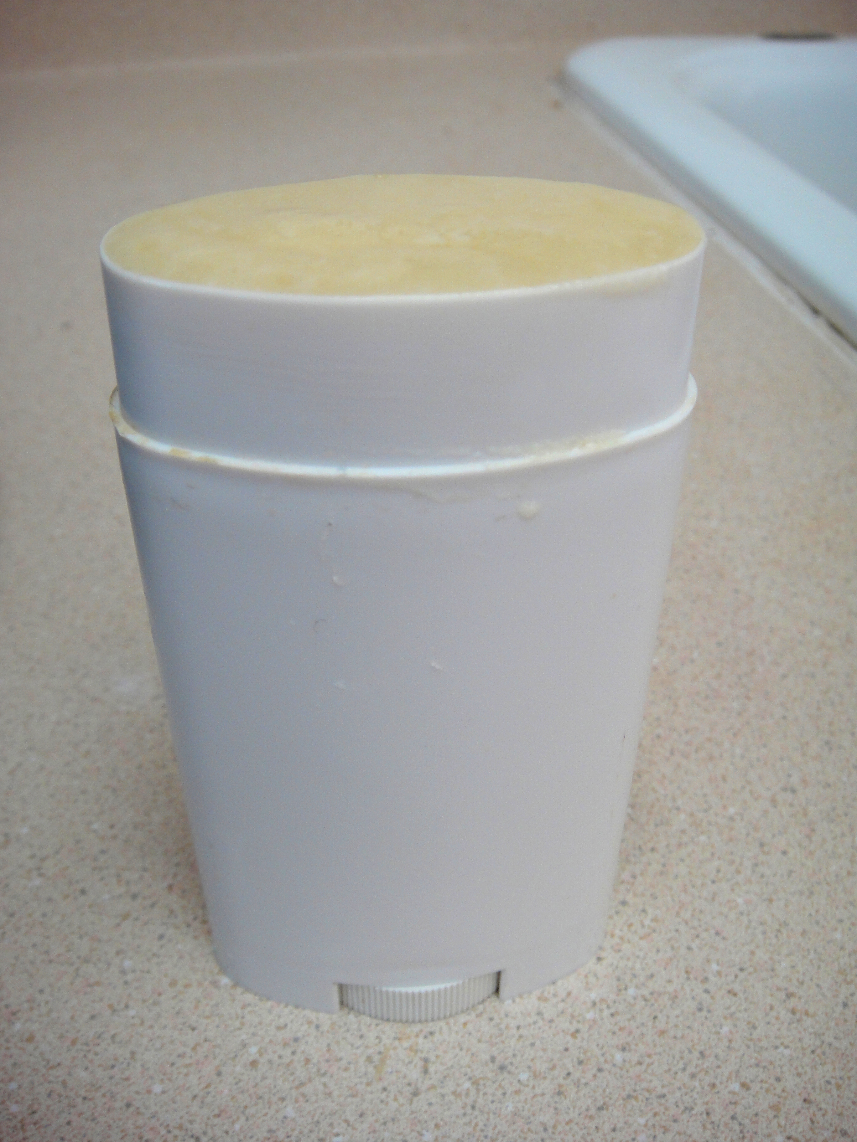 I’m not sure what caused the little concave space, maybe it set too quickly. But, it was easy enough to fix. I just let it sit at room temperature for 20 minutes and then twisted the deodorant stick up and used a spoon to level it off.