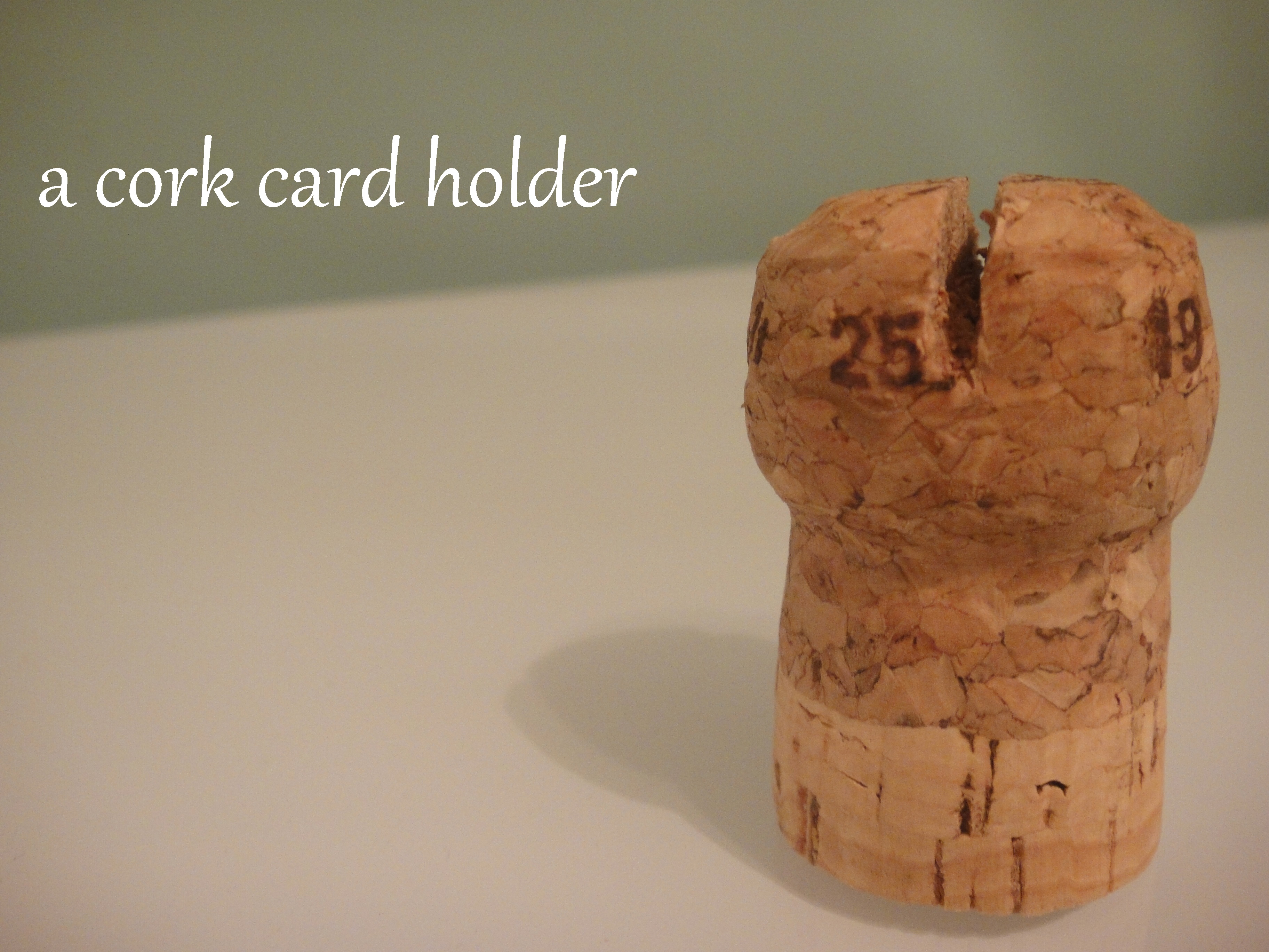 Next to a nice malbec, my wine of choice (especially in summer) is prosecco. It’s delicious, inexpensive, and has the power to make a small occasion feel like a celebration. After opening a bottle for a cook out last week, I looked a bit more closely at the cork and had an idea – in addition to providing economical bubbly, my prosecco provided the perfect base for a display card holder.