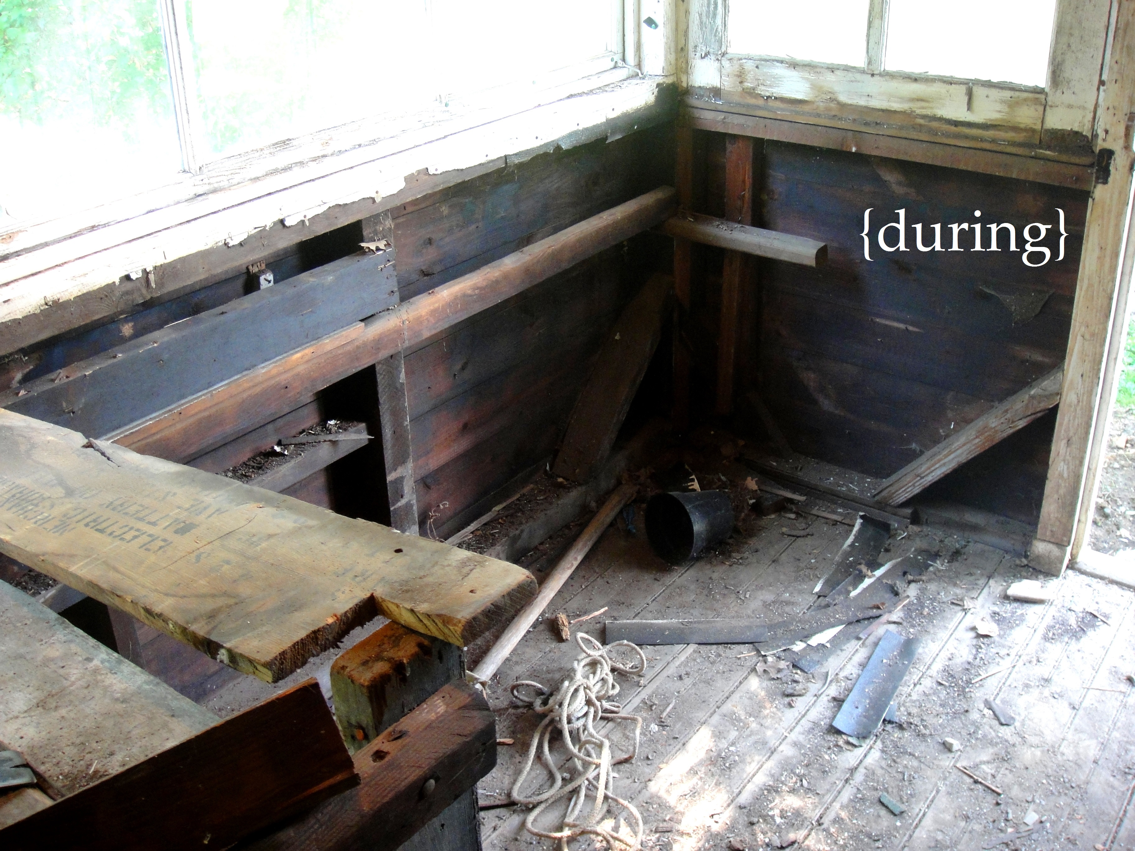 I absolutely love the coop’s front door. I’m hoping to strip and paint or stain it and put it back up. But, enough of the exteriors – let the demo begin!