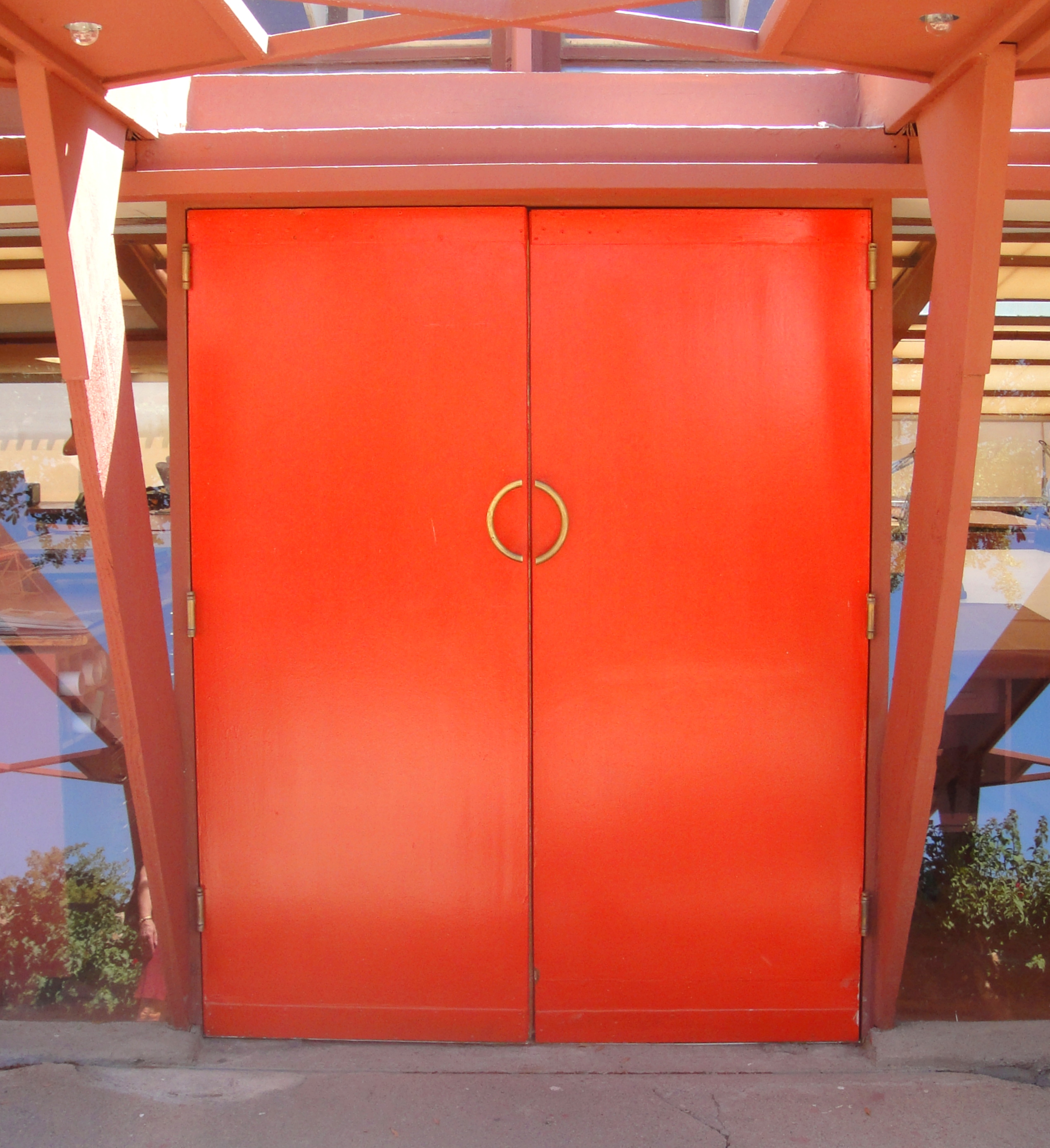 This door was one of many entry ways into the house from the pool and courtyard area. It’s the classic Cherokee red seen throughout the property.backyard at Taliesin West