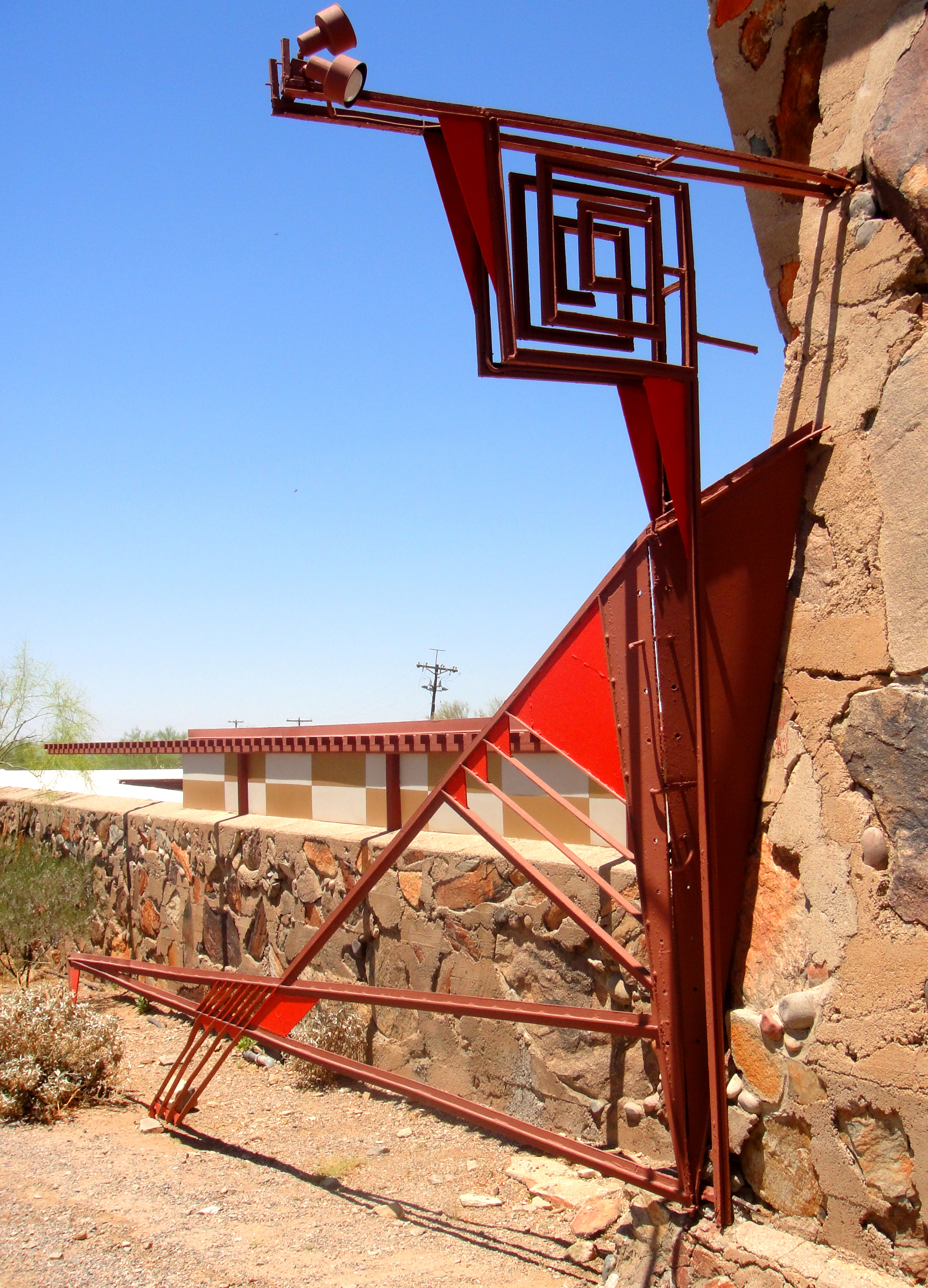 Driving toward Taliesin, it was difficult to tell if we were getting close. Our tour guide told us that when selecting the site, Wright speculated as to how far urban sprawl may reach and then he doubled the distance when choosing the land for Taliesin West. Without these little signs, it would’ve seemed like any other desert road.