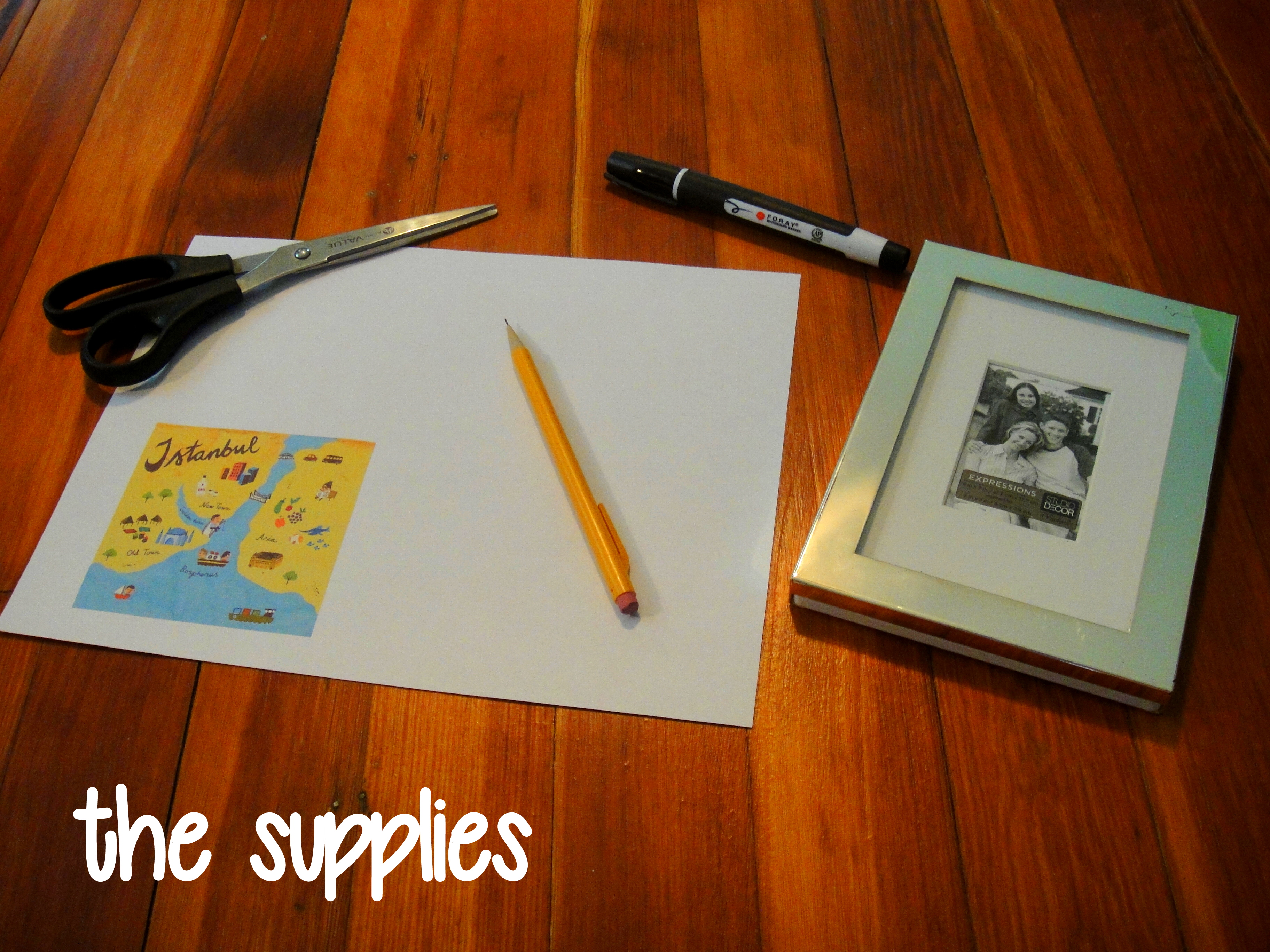The white matte is a clean space to write and the glass is the perfect dry erase surface. The whole project took 10 minutes and because I had the frame lying around, I enjoyed the added bonus of this costing zero dollars. Now, it sits right next to the coffee pot so we’re sure to think of the trip everyday, get excited, and save all the extra cash we can!