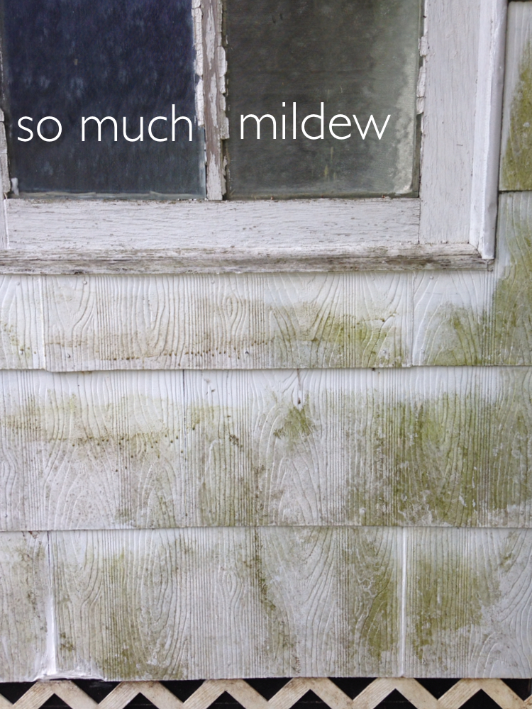 Ordinarily, I would have thought to use either a power washer, like I did when prepping the house to paint or maybe bleach. But, then I remembered my absolute favorite cleanser of all time – distilled white vinegar. You can check out my post about making your own glass cleaner with vinegar here.