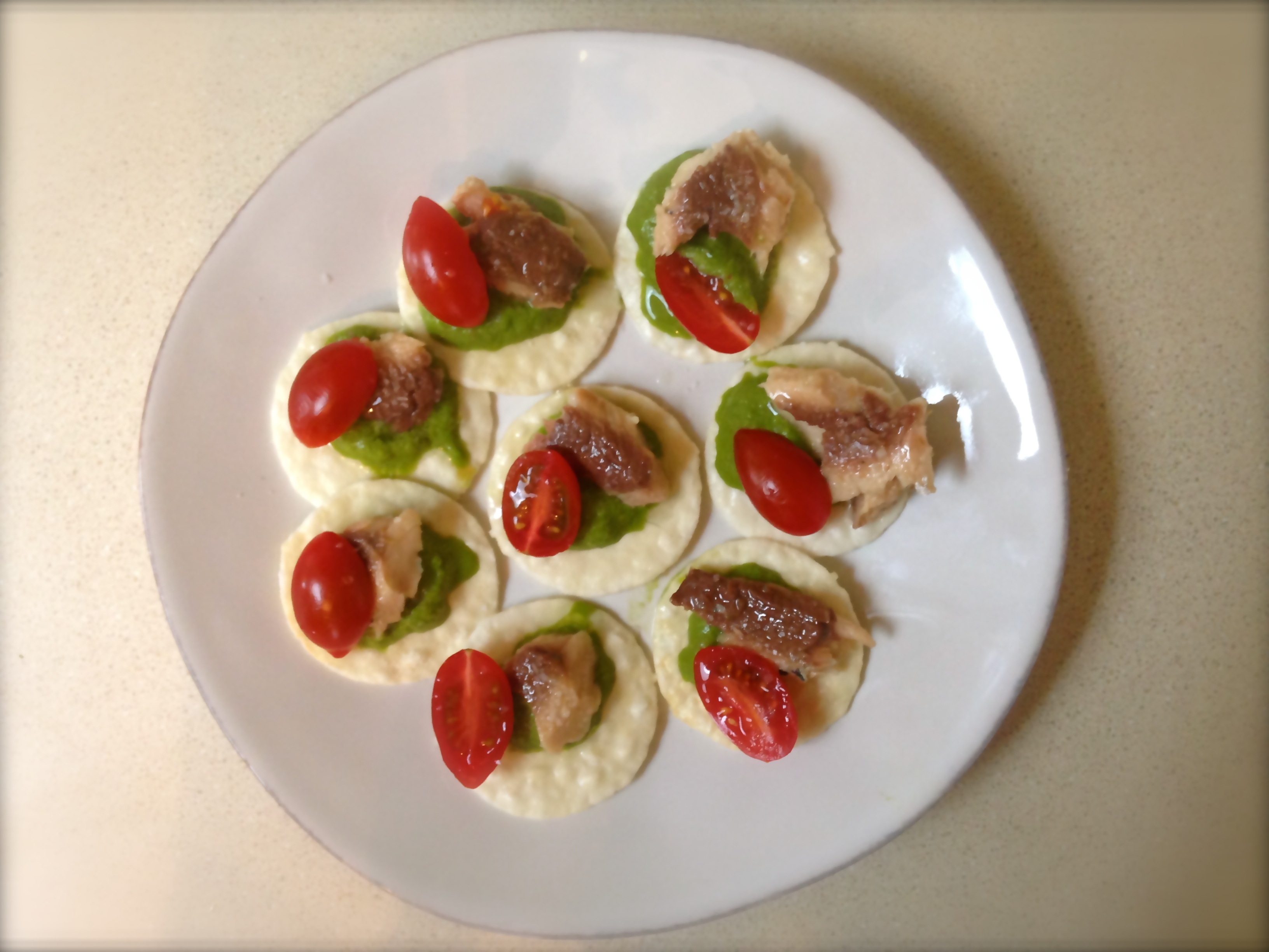 If you have extra green stuff, you can attempt a snack within a snack. We made these fantastic little treats with avocado, sardines, cherry tomatoes and rice crackers.